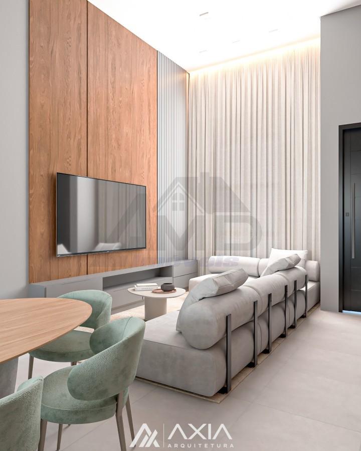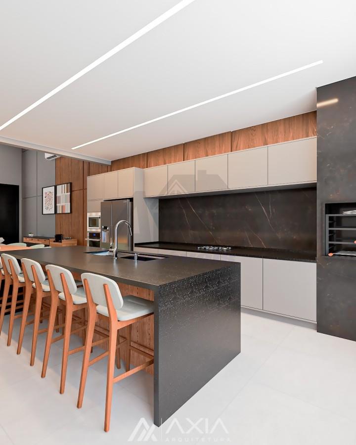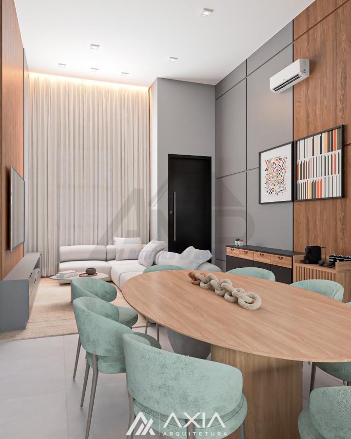 A área social possui cozinha gourmet integrada à sala de estar e jantar, com um layout moderno e ambientes amplos. O imóvel dispõe ainda de lavabo, ideal para receber visitas com comodidade.